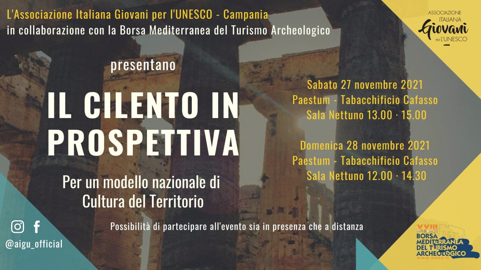 I soci campani dell’Associazione Italiana Giovani per l’UNESCO vi aspettano sabato 27 e domenica 29 novembre a Paestum per “Cilento in prospettiva – Per un modello nazionale di Cultura del Territorio” – evento all’interno della Borsa Mediterranea del Turismo Archeologico 2021.