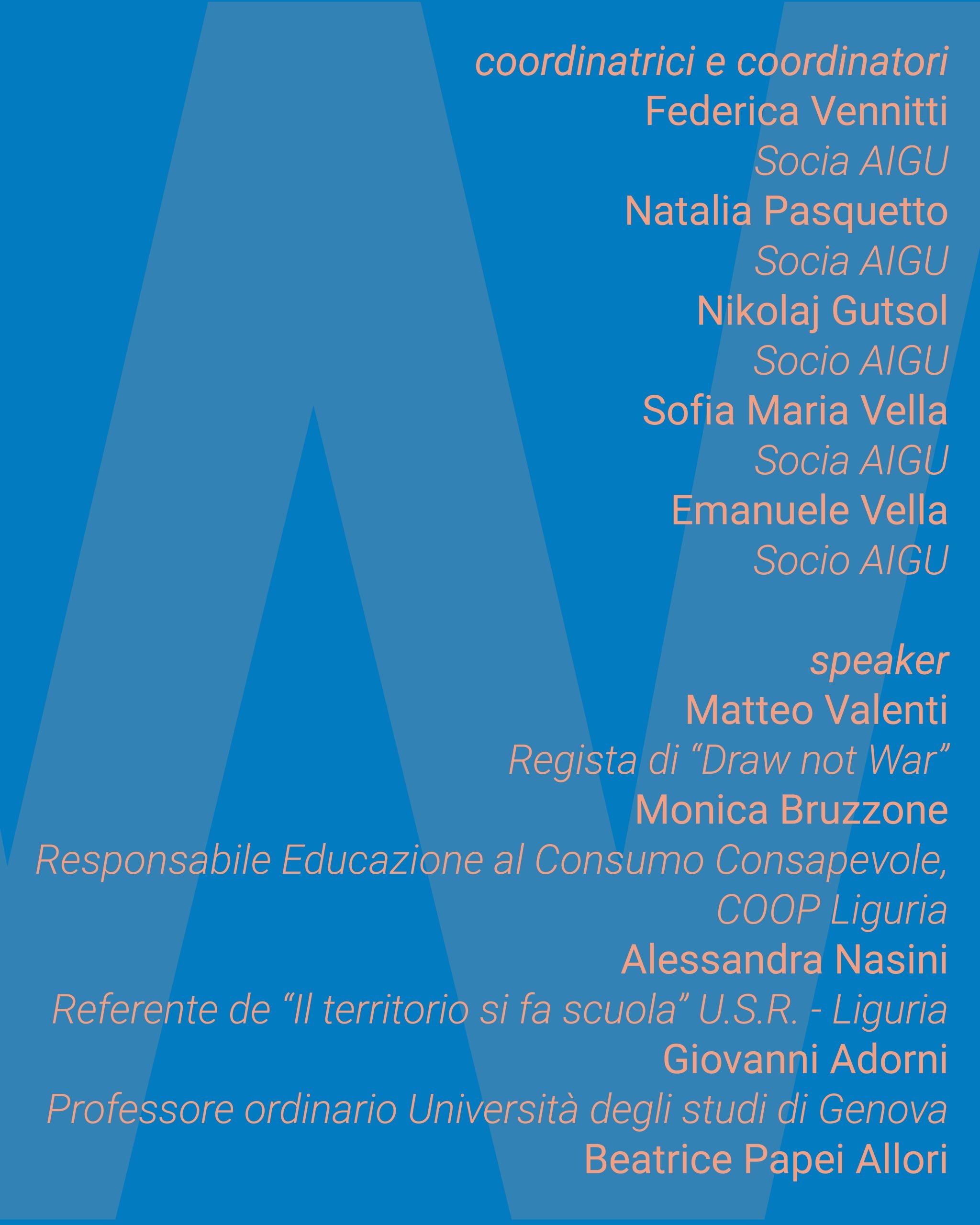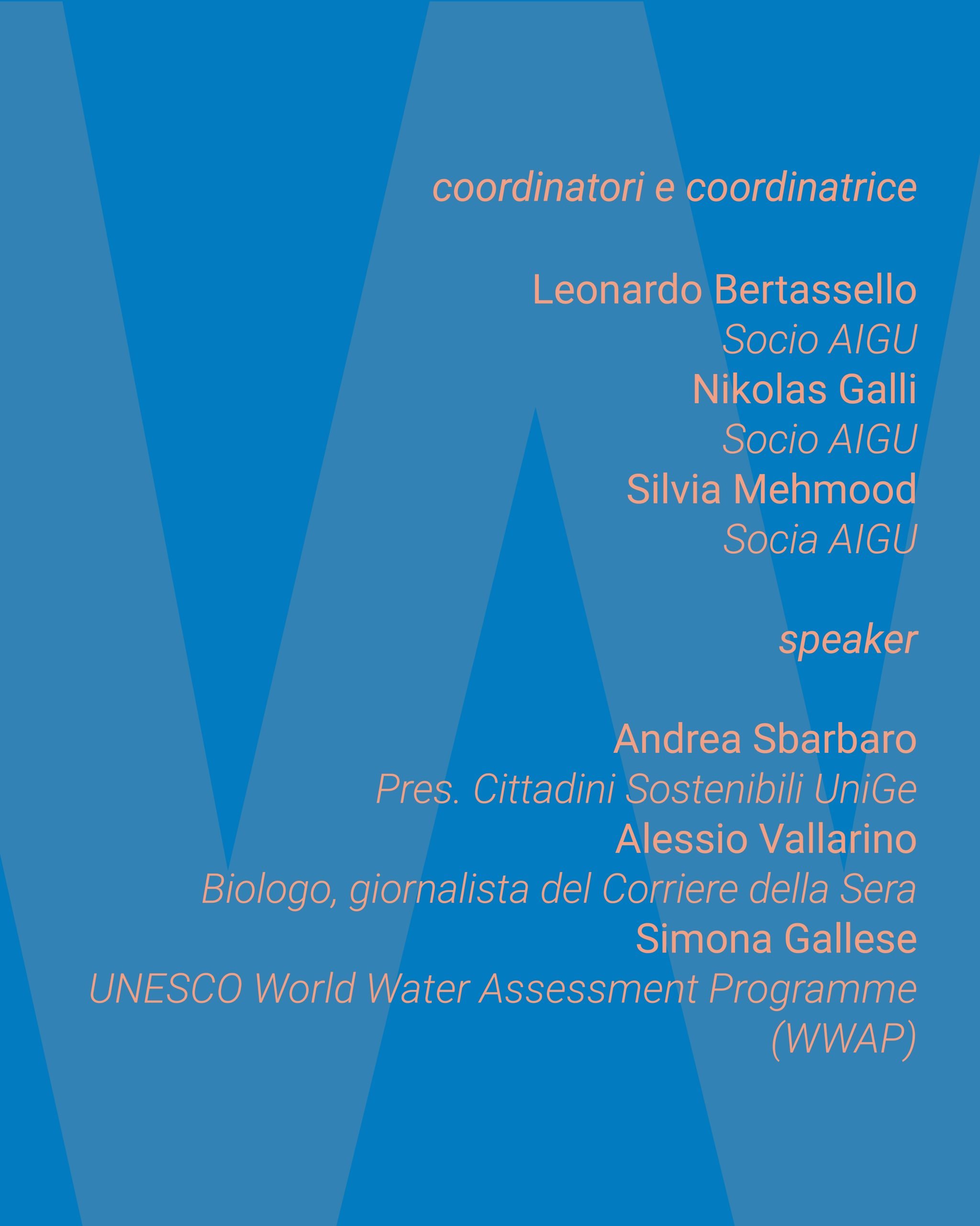 World Water Assessment Programme (UNESCO), Comitato Regionale UNICEF – Liguria, Casa del Mutilato – Genova, Fondazione A.N.M.I.G., Casa Luzzati, Lele Luzzati Foundation, Associazione Culturale Giano, Cittadini Sostenibili APS, USR – Ufficio Scolastico Regionale – Liguria