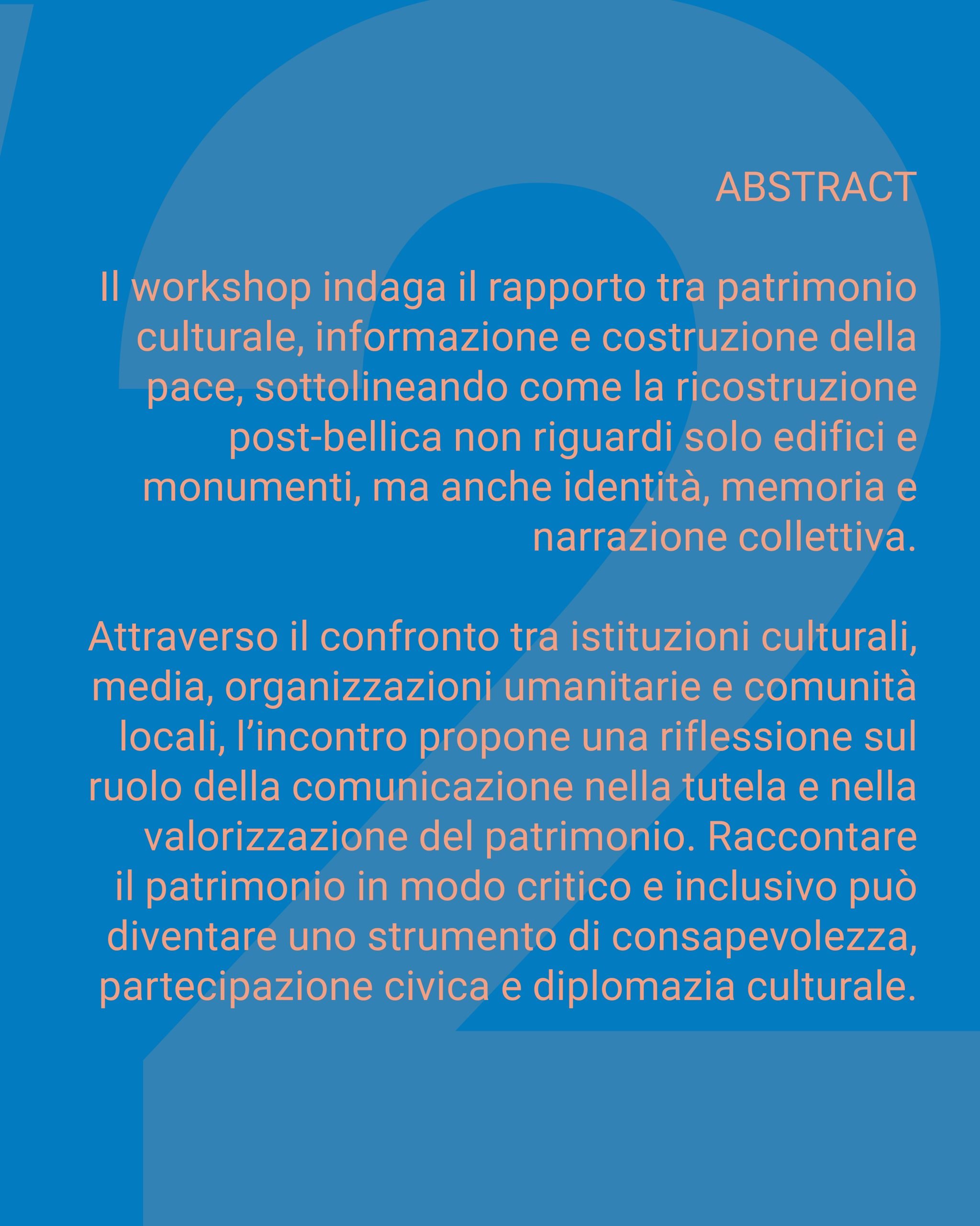 - 10:00 – 13:00 Workshop – aperto fino ad esaurimento posti
